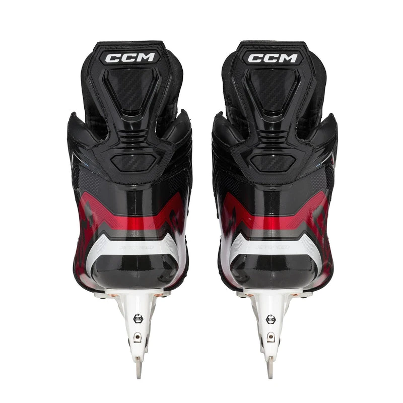 The new and improved one-piece boot speed is all about performance and acceleration, now featuring game ready fit for the ultimate anatomical connection from your foot to your skate, maximizing comfort and force transmission The PowerFlex tendon provides more range of motion and increased extension on your skating strides for faster foot speed The ADPT comfort tongue features FlexMotion lace-bite technology to enhance your forward flexion and Metatomic TriTech construction for optimal fit and comfort Equipped with best-in-class step BlackSteel, these blades are carbon-coated for better edge life and phenomenal gliding ability to make you skate faster than ever The new enhanced dial integrated into the XS holder enables quicker and easier blade exchanges, even in ice and snow Throw in enhanced ankle and liner padding, and the JetSpeed FT6 Pro skates will have you looking good, feeling good, and playing good