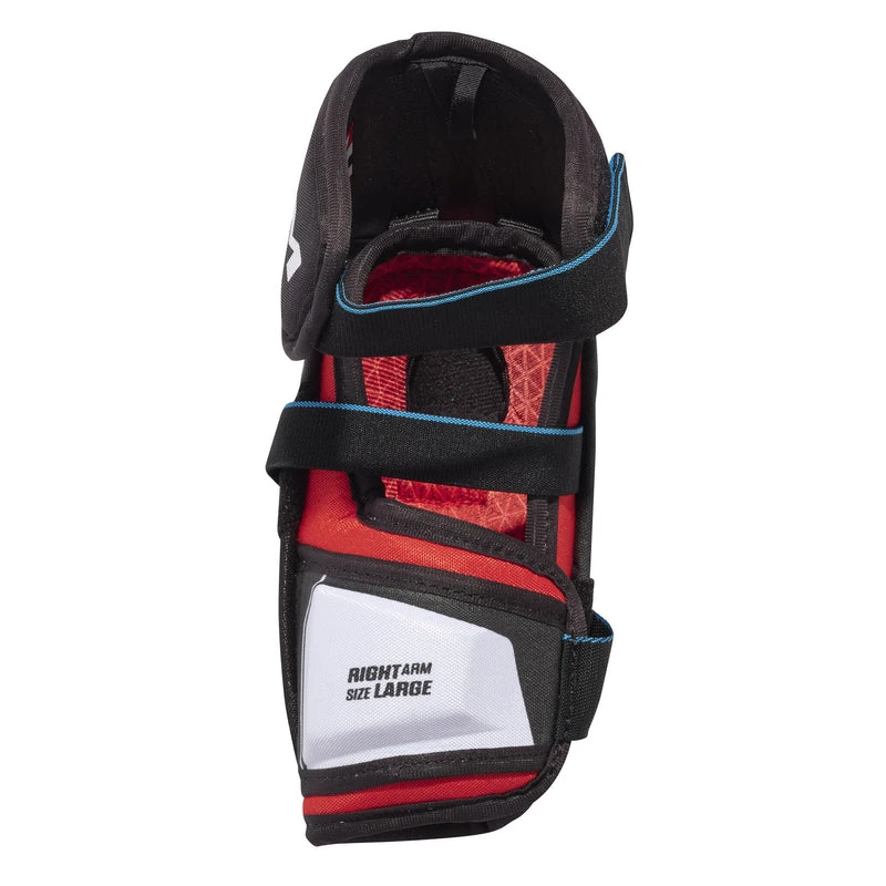 The Source Exclusive CCM JetSpeed Vibe elbow pad is a two-piece design featuring an upgraded forearm guard and a simplified two-strap system, providing maximum comfort and style