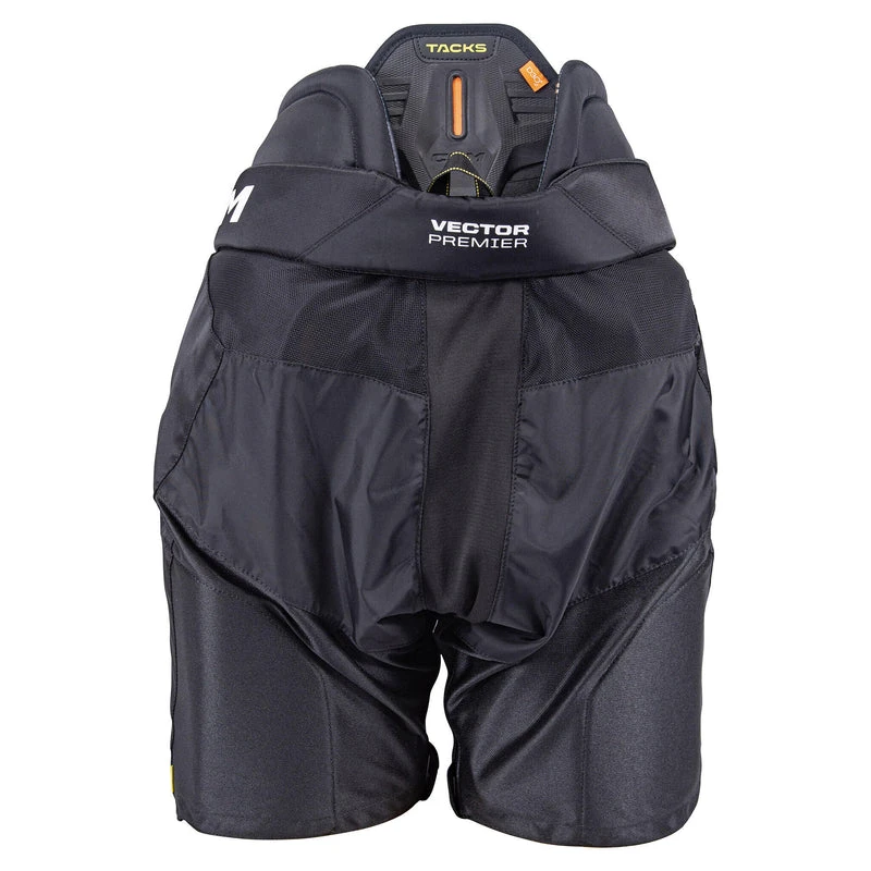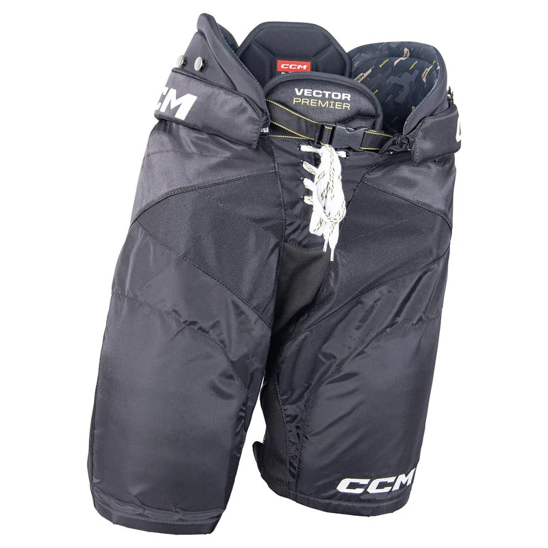 The CCM Vector Premier pants deliver the comfortability and protection of the Super Tacks AS-V Pro at a reliable price point Our experts know that fit, protection, and performance are the key elements to be a game breaker without breaking the bank for the rep player With protective upgrades such as the stabilized belly pad, abrasion resistance belt, and molded spine lining, you will reduce impact to the key areas surrounding your waist With the Source Exclusive embroidered CCM logo at this price point, you will be buzzing around the ice in style this season! Available only at Source for Sports!